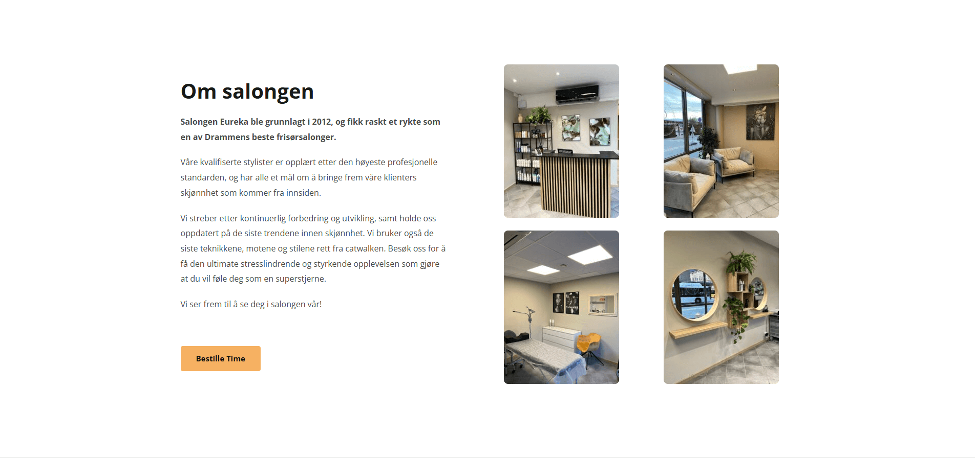 Создали для салона красоты Salong Eureka (г. Драммен, Норвегия) многостраничный сайт, который стал основным источником клиентов. Благодаря локальному SEO, сайт генерирует 30+ клиентов в месяц — и все это без платной рекламы.